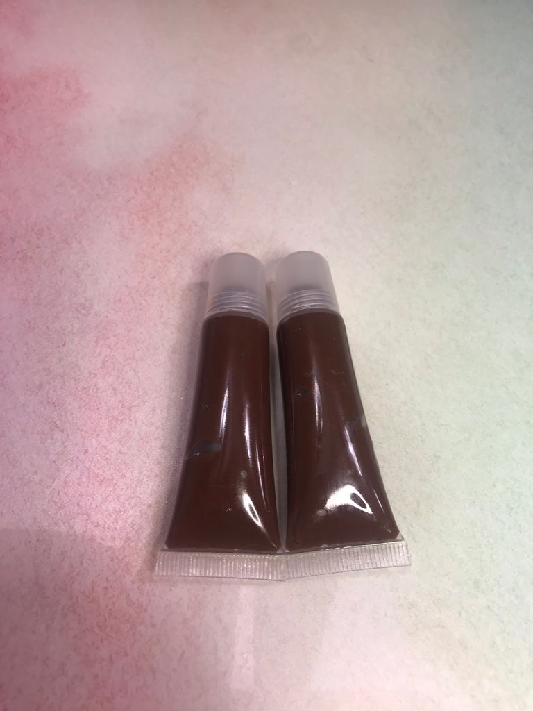 A chocolate brown tinted gloss.  This gloss is birthday cake scented.